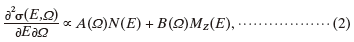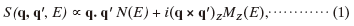 ここでq及びq' は運動量移送ベクトル、Eは損失エネルギー、NE)及びMZE)はそれぞれ非磁性スペクトル(たとえば遷移金属のL2,3ホワイトライン)及びEMCD信号である。(1)式では測定試料は対物レンズの磁場によってz軸(TEM光軸)方向に磁化飽和していると仮定している。
