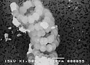Anabaena spiroides sp. 反射電子像( アナベナの鞘が見えている) 化学固定なし ×1,500 |