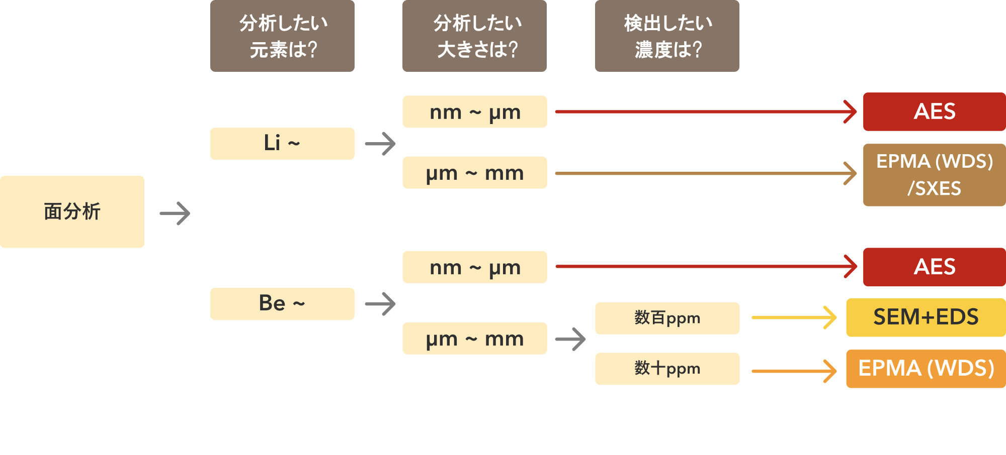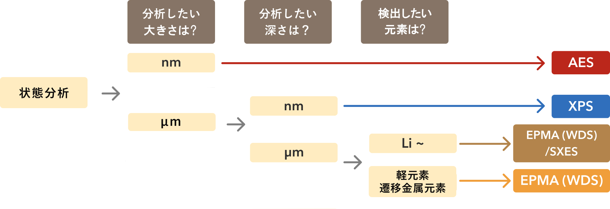 | 分析手法 | EPMA (WDS)/SXES/EDS | AES | XPS | XRF | SIMS |