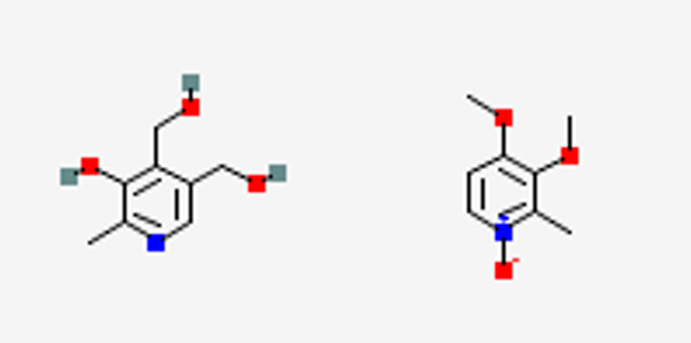 まず、Aに注目すると特徴的な芳香環の骨格構造が含まれています。Aの化学式 (C8H11NO3) を考えると、これはベンゼン環 (C6) もしくはピリジン環 (C5N) のどちらかであることがわかります。そこで、PubChemの部分構造を用いた検索機能を使います。Aの分子量 (169.0739 Da)、C6環/C5N環の部分構造、水素原子以外を12個もつ構造は23個存在します。ここで化学式ではなく分子量と非水素原子の数を検索に用いたのはPubChemのインターフェースの設計のためであり、本質的なことではありません。ほかのデータベース (有料ですが) を用いることにより、化学式と部分構造による検索も可能と考えられます。23個の構造を目視で3D電子回折の骨格構造と比較すると、一致するのは2個のみでした (図2A)。このようにDART-HRMSの結果を3D電子回折の構造をもとにデータベースマイニングすることにより、非常に効率的に構造を絞り込むことができました。