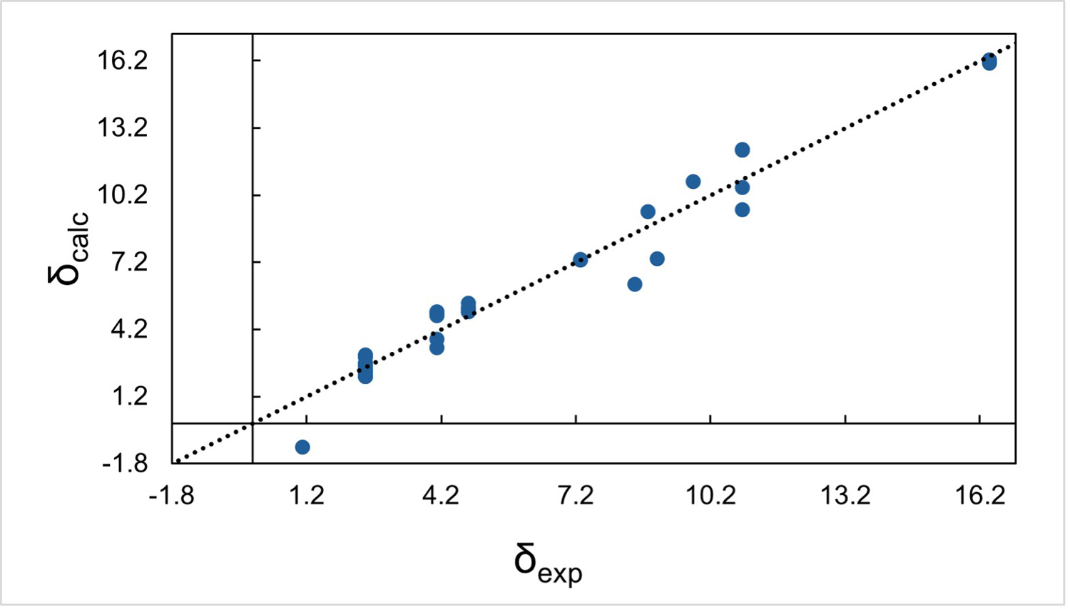 図3 計算および実測固体 (a) 1H, (b) 13C, (c) 15N NMRシフトの比較。