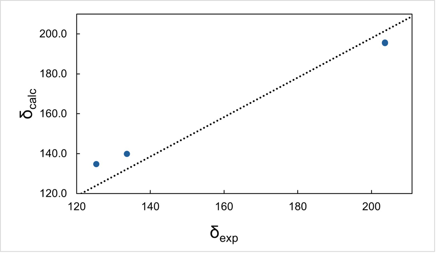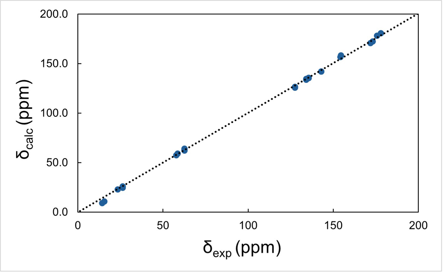 実際に計算および実測NMR化学シフトを比較してみました。1H、13C、15N NMRすべてが非常に良い一致を示しており (図3)、図2bの結晶構造が確からしいことを確認できました。また、より重要なことは、図2bの構造はサンプル全体の結晶構造を代表するものであることが実証できた点です。