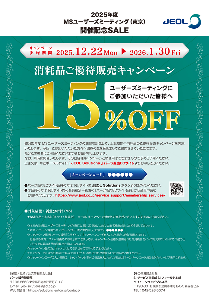 第51回 NMRユーザーズミーティング (東京) にご参加いただいた皆様へ期間限定で消耗品のご優待販売キャンペーンを実施いたします。是非この機会にご用命くださいますようお願い申し上げます。