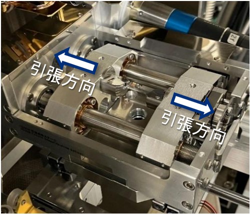 図1. JSM-IT810の試料ステージに取り付けた引張ステージの外観